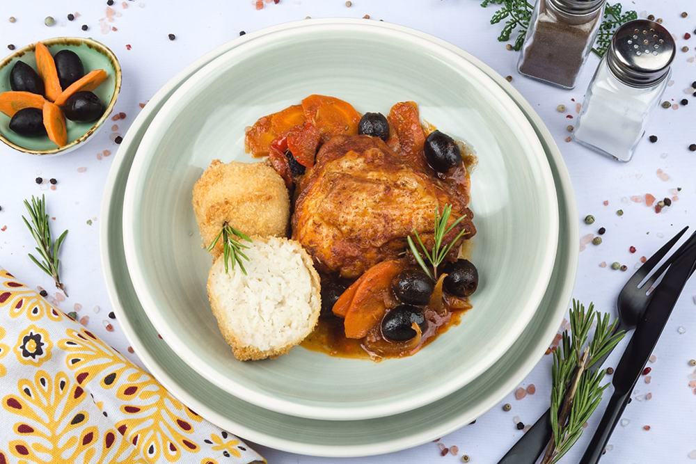 Carnea de pui este deosebit de apreciata pentru gustul aromat si textura frageda. Pentru a da startul unui pranz delicios, bucatarii nostri va propun o asociere inedita de arome si texturi: pulpa de pui la cuptor suculenta, risotto mantecato, legume gustoase si sosul fin. Un adevarat deliciu!
